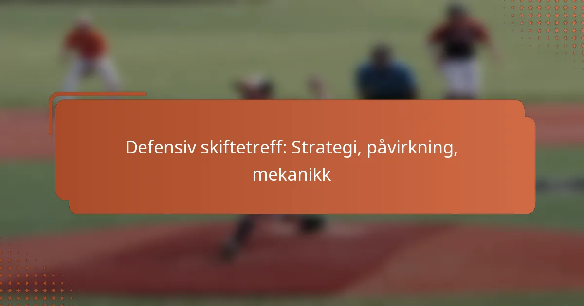 Et defensivt skifte endrer spillstrategien betydelig ved å posisjonere spillere på en måte som maksimerer sjansene for å gjøre spill mot spesifikke batters. Denne taktikken har som mål å redusere batting averages og den totale offensive effektiviteten ved å forutsi hvor ballen sannsynligvis vil bli slått basert på statistisk analyse av spillerprestasjoner.