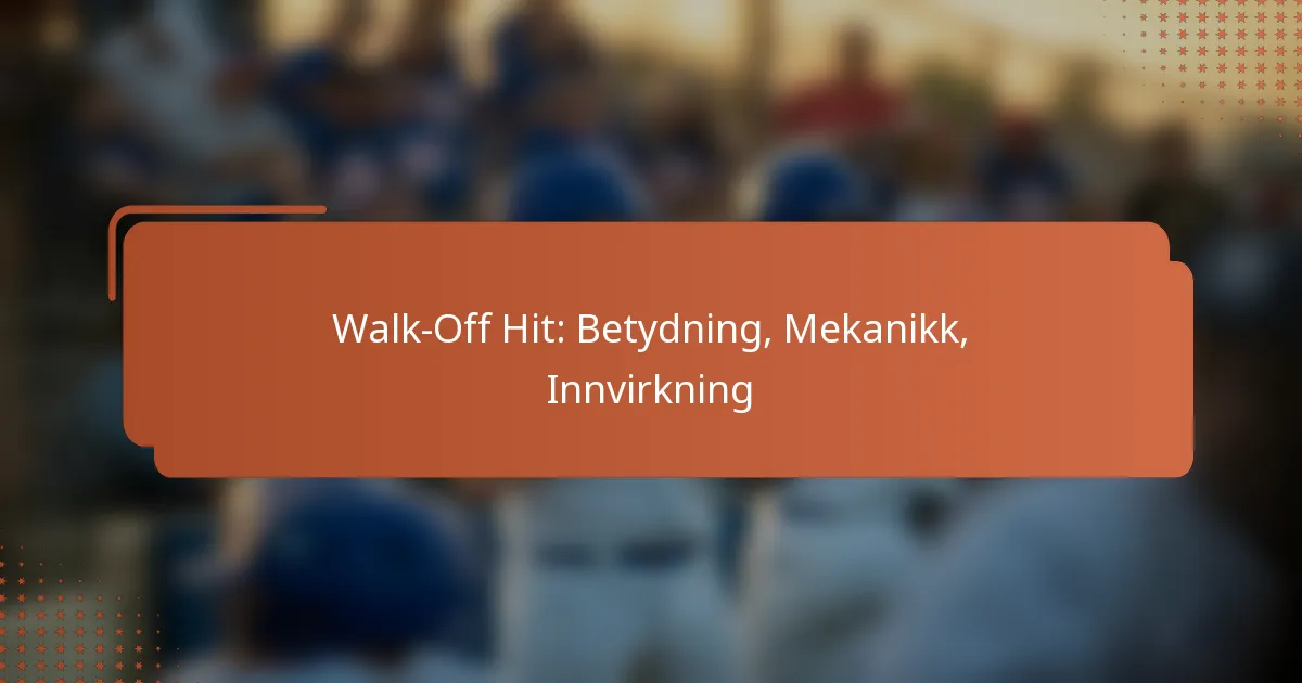 Walk-off hits er avgjørende øyeblikk i baseball, som signifierer et spillavsluttende spill som sikrer en seier for hjemmelaget. Disse hitene fremhever ikke bare individuell spillerprestasjon, men reflekterer også bredere trender i kampresultater og historisk betydning.